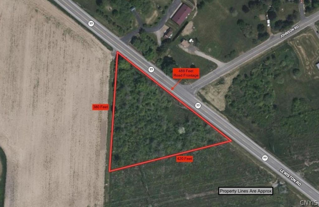 Excellent building lot for your new home located in Middleport NY, Niagara County. The lot consists of 1.77 acres and is mostly wooded and level. Located at the intersection of Johnson Road and Lewiston Road. The lot has 488 feet of road frontage with electric located at the road. Great location to build your home located just east of Lockport NY. Annual taxes are $136.12. All rights convey. This property is located approximately 15 minutes from Lockport NY, 27 minutes from Batavia NY, 44 minutes from Buffalo NY, and 1 hour from Rochester NY.